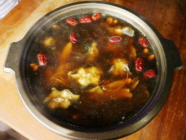 <藥膳鱸鰻鍋>約$900,散發香郁中藥味,湯看起來清澈,先嚐一口湯,淡淡的藥材香味,沒有添加過多的調味料,喝起來不鹹,入喉後感覺味甘甜