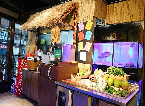 很有部落粗獷風格的出餐枱,一旁擺有水族箱,海鮮都是現點、現撈、現做的,超新鮮!