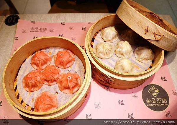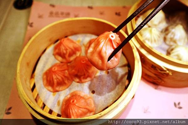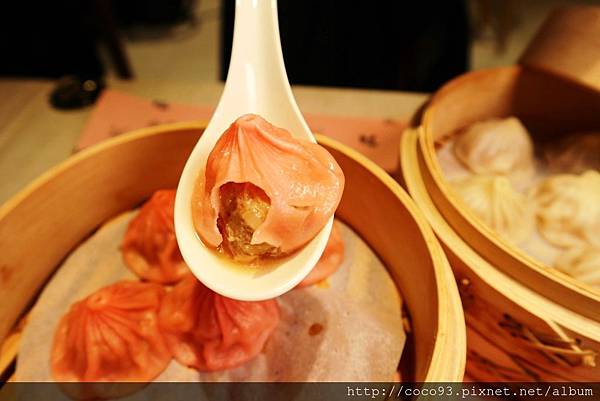 姐妹們衝著粉桃紅的<櫻花蝦小籠包(一籠6顆)>來的,皮薄餡多,湯汁略少