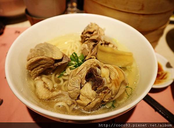 加點<元盅土雞麵>$200(大),雞湯不是調味的,而是燉煮多時的鮮雞湯,金黃清澈,喝起來甘甜味鮮,純正雞湯!