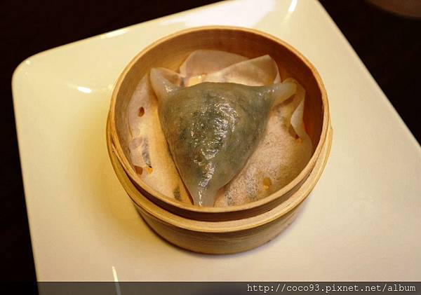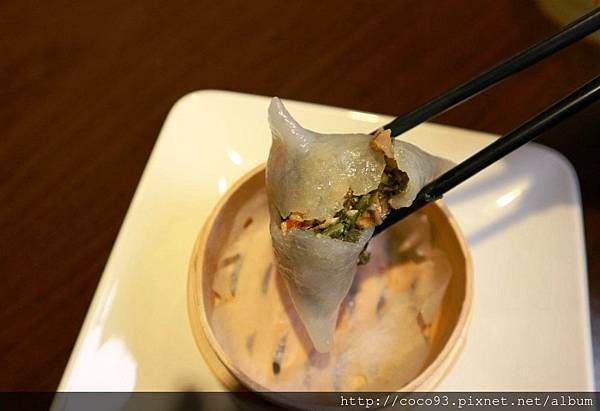 <雪裡紅蒸素餃>餃皮薄彈,雪裡紅內餡香氣逼人,素菜好滋味