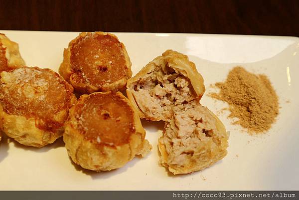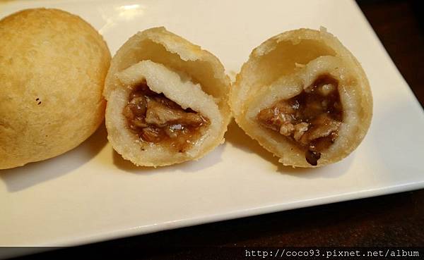 金黃外皮,外層薄酥,內層軟Q,鹹香中帶有濃郁的香菇味
