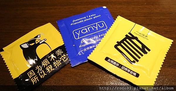 哈哈~是我想太多了,它是一次性手套,讓客人在吃小龍蝦剝殼時可以不沾手,不然得洗好久,才能把手上的蝦味去除掉