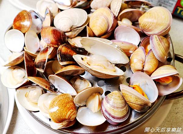 貝類層有牛奶貝、文蛤、蛤蜊等數種,貝肉滑嫩,入口爆汁,微鹹海味,滋味鮮美