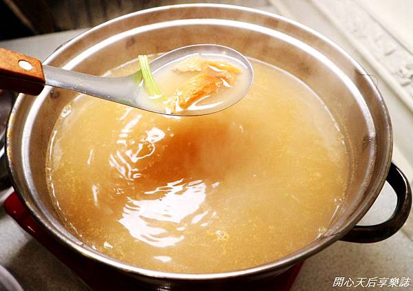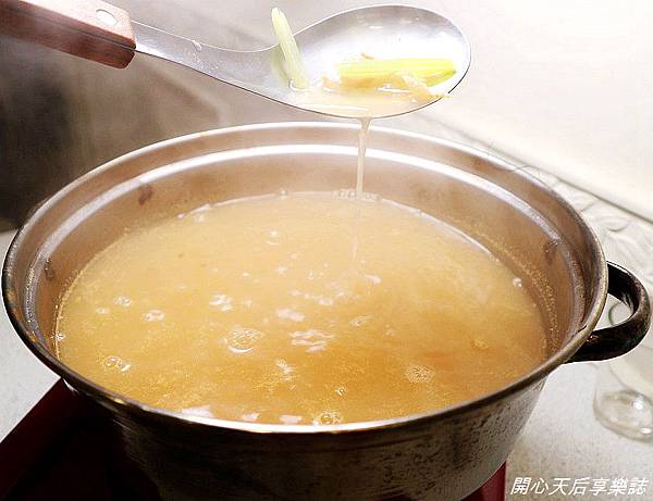 著名的招牌沙茶爐湯底採用扁魚、芹菜等多種蔬果精心熬煮加上海鮮塔蒸煮時滴入的海鮮精華,喝起來有著魚香甘甜,全無魚腥味,湯頭鮮美極了!