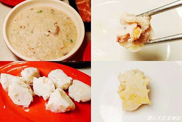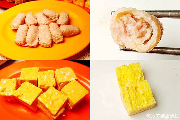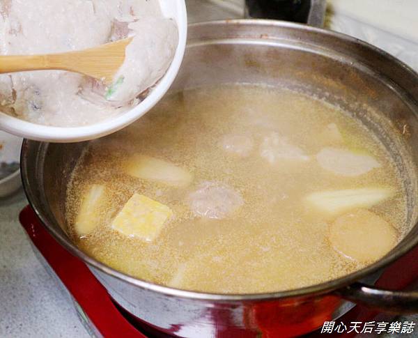 <芋頭貢丸>(下)外表看似一般,但一煮熟,立馬爆餡,露出好多芋頭小塊,芋頭口感鬆鬆綿綿的