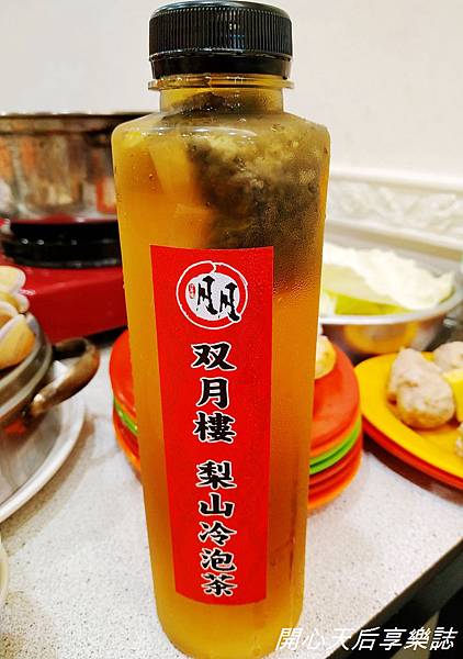 餐後喝著『二月牌沙茶爐-新竹北門店』自製的梨山冷泡茶,清香茶味,順口不澀,爽口又去味