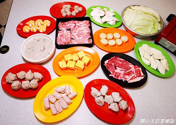 其他食材採自助式,特別的是以盤子顏色計價,並貼心提供小菜藍給客人,方便放置食材盤