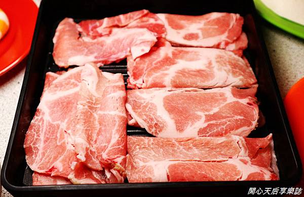 <優格豬>也比一般火鍋店的豬肉片厚,入口有股淡淡的穀香,無油感有嚼勁