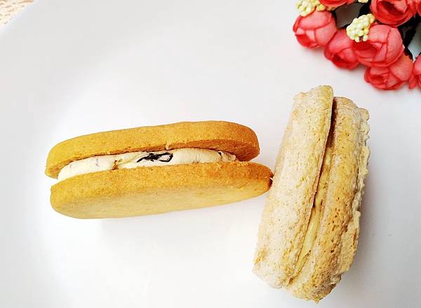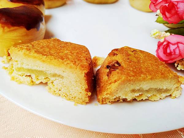 創意糕點<葡萄之戀>(左)~厚實奶香的牛奶餅乾,夾著香郁的法式奶油加上大粒葡萄乾,吃起來竟有香檳酒味,感覺高級又唰嘴,很想再多吃一塊