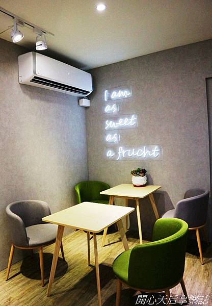 店內採用嫩綠暖灰的裝潢色調,符會產品「天然、無添加」的大自然形象