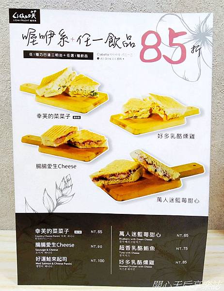 不止有手搖飲,也販售「輕食」,只要點任一口味<巧巴達三明治>+任一飲料,打85折,好划算