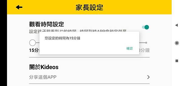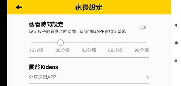 有了『Kideos』後,我通常會設定觀看時間為15分鐘,時間一到,休息15分鐘後,再繼續看15分鐘