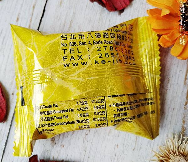 <柯記鳳梨酥>採獨立小包裝,背面同樣有產品資訊標示
