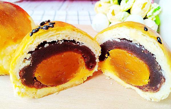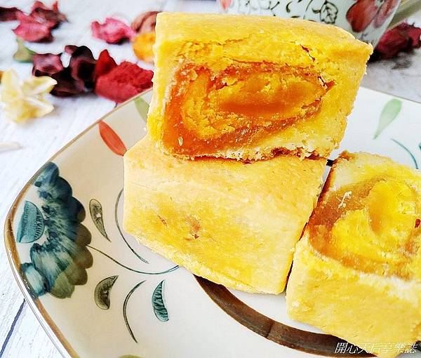 聞起來有著誘人的豆沙餅香,特選新鮮宜蘭蛋黃,口感微濕潤,入口不會掉屑