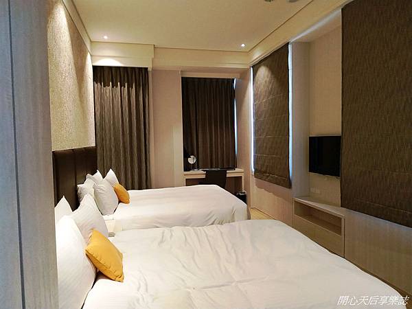 房間高雅簡約,有二大床,乾淨舒適,空調溫度可以自己調整,隔音很好