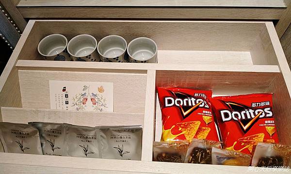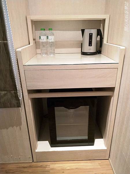 房間內的備品很齊全,附送礦泉水、茶包、咖啡包、零食、手工餅乾、<香氛美學/氣味詩特展>小卡,也有透明小冰箱