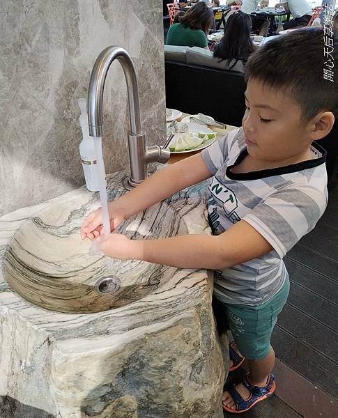 大理石的公共洗手台,真是體貼媽咪小孩~不用到餐廳外洗手,很方便,好貼心的設施