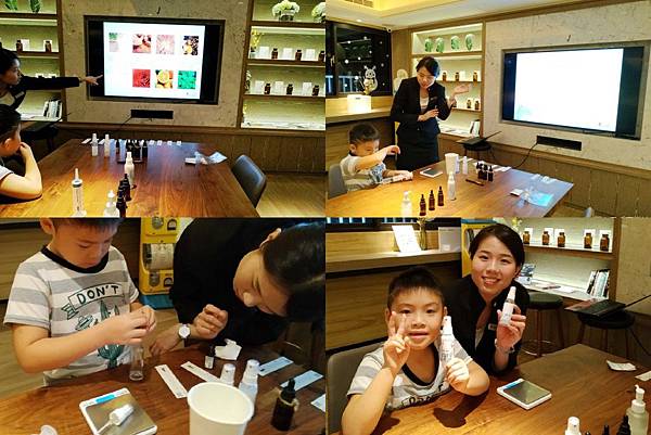 吃飽後,到M樓體驗親子手作<香氛噴霧>,恩恩堅持自己動手做,真感謝Vera講師很nice又有耐心的教導及協助,讓恩恩全程都很起勁 、很高興!