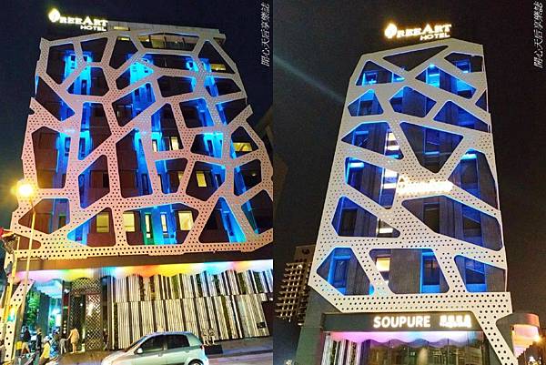 晚上的『璞樹文旅TREEART HOTEL』看起來繽紛耀眼