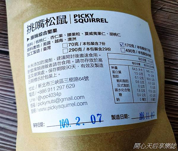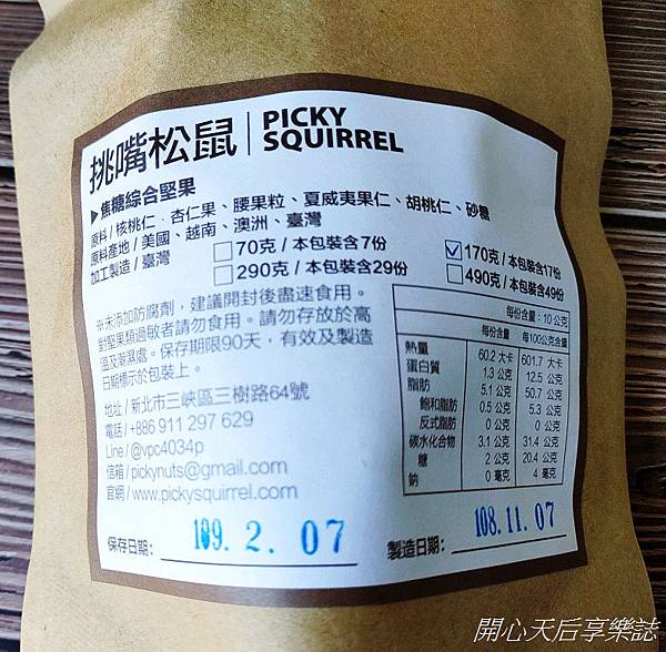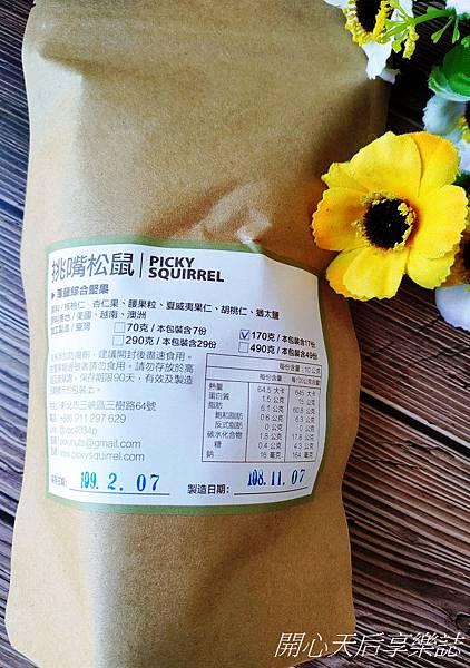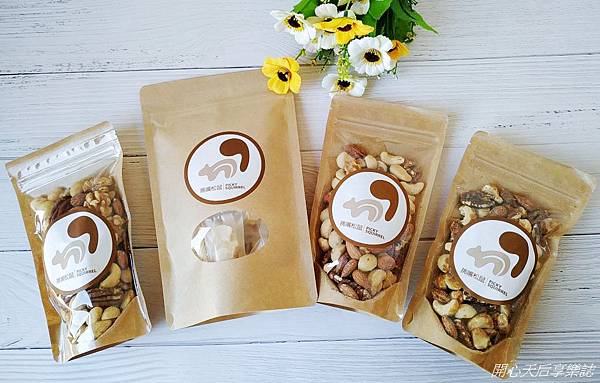於是入手『挑嘴松鼠』原味、焦糖、薄鹽綜合堅果隨手包及手工夏威夷果牛軋糖各一包