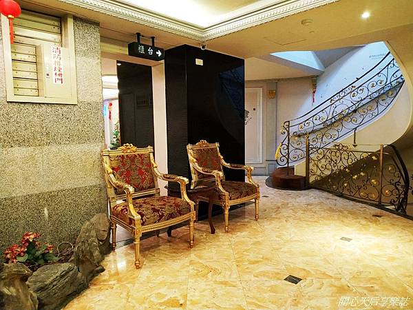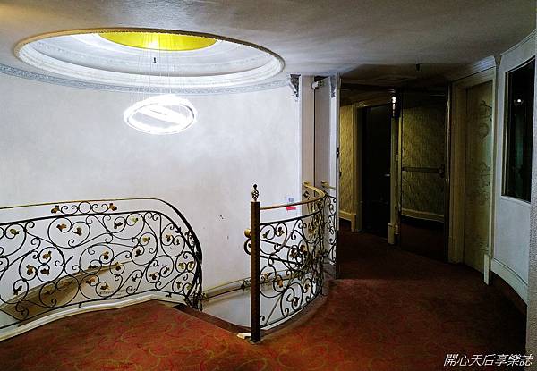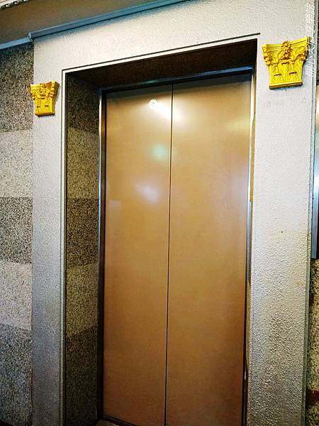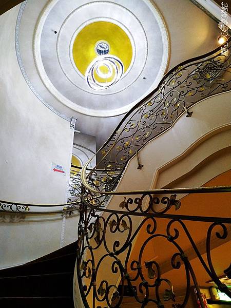 『金色年代商務旅店』的電梯門二側貼有金色典雅柱頭,螺旋樓梯有著美麗花紋的鍛鐵扶手,配上炫麗的流線型水晶吊燈,很有"金色年代"fu~