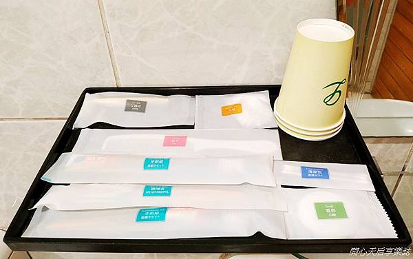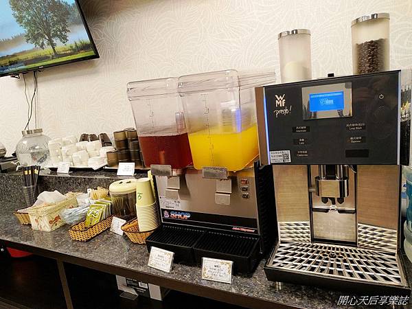飲料區選擇不少,研磨咖啡、果汁、茶包,更有高山茶葉,可現泡來喝喔