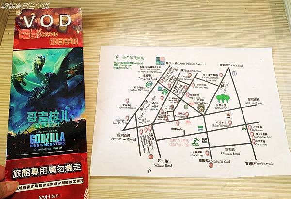 化妝台抽屜內有周遭吃喝玩樂的地圖及隨選電影節目手冊