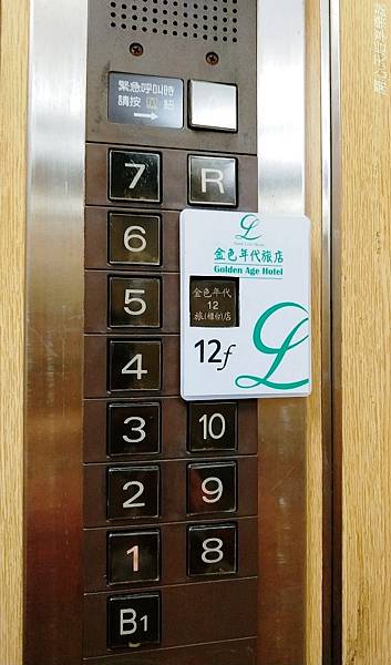 進入大樓電梯,按鈕區明顯標示『金色年代商務旅店』所在的樓層~11、12、13樓