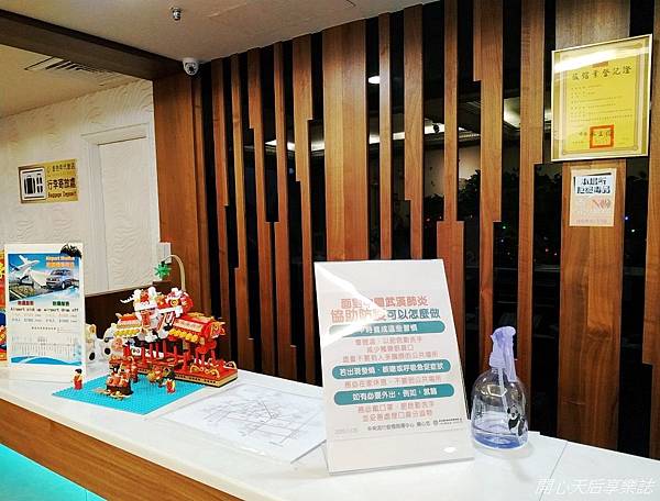 現在因應武漢肺炎防疫,櫃台人員都有戴口罩且會先測量旅客耳溫,並在旅客雙手噴灑酒精消毒,做好防護,可安心入住