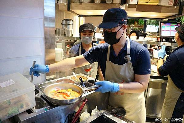 『Supreme Salmon美威鮭魚專賣店-美河市店』開放式廚房,料理過程看得到,比較讓人安心