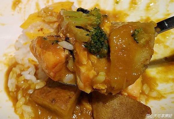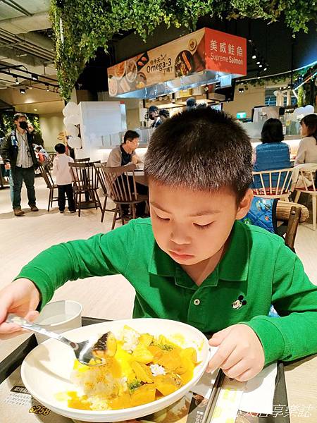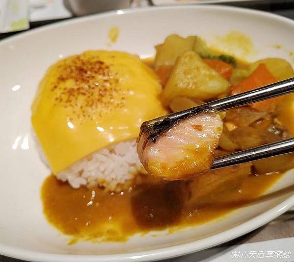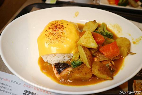 胃口很好的母子倆又加點<嫩烤鮭魚起司咖哩飯>日式咖哩風味,口味不辛辣、不重鹹,又帶有蔬菜清甜味