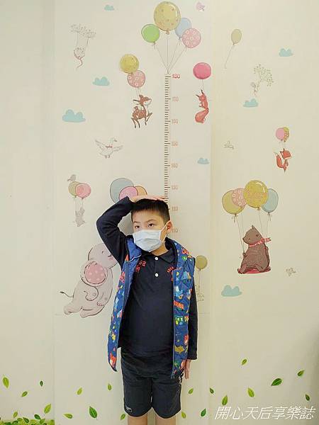 牆上貼了可愛的壁貼,恩恩和其他看診小朋友一樣愛量身高