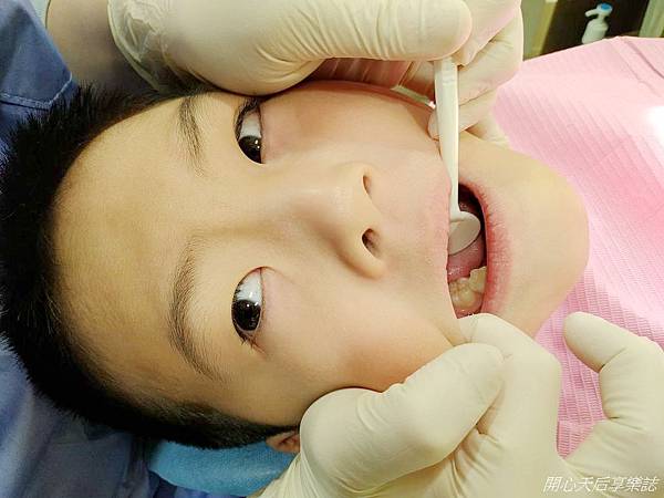 賴醫師看了環景數位X光片後,進一步檢查恩恩的牙齒