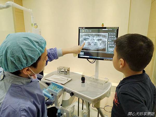 同時賴醫師也對恩恩詳細解說目前他上下顎牙齒排列形狀及咬合狀況,恩恩提出不少疑問,賴醫師都很有耐心的傾聽並不厭其煩的回答他