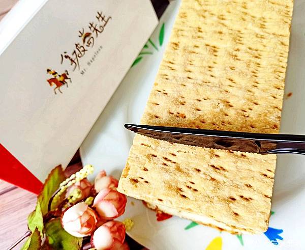 按照建議切成6等分,一口咬下,酥脆中帶有綿彈的香草蛋糕口感,咀嚼時有著肉鬆、肉紙的鹹香及濃郁奶油的香草蛋糕甜味,鹹中帶甜,融合成美妙的創新甜點新風味,不愧是【拿破崙先生X快車肉乾】的精心聯名大作!