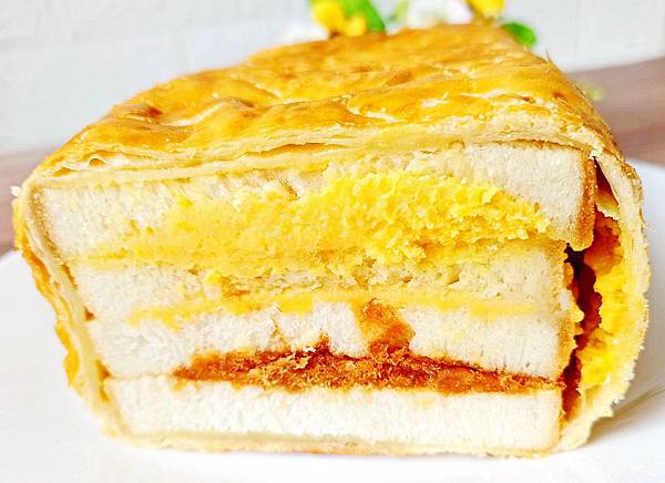 人氣商品『拿破崙先生-黃金流沙三明治』,光看金黃色的千層起酥外皮,恩恩就迫不及待想開吃