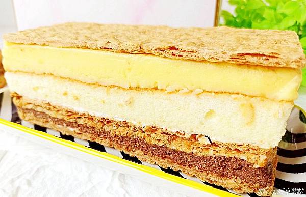 <檸檬拿破崙 >除了上下兩層拿破崙派特有的千層酥脆派皮,由上而下: