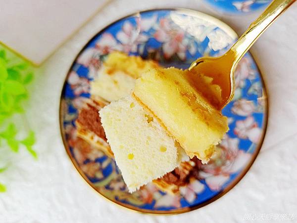 第一層是以100%檸檬汁做成的檸檬凍餡,第二層是香草蛋糕,第三層是千層酥脆派皮,第四層是巧克力蛋糕