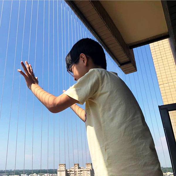 『家適美-隱形鐵窗』線條極簡,每條鋼索都經過SGS拉力測試,可承受139-300公斤的抗拉力與撞擊,且鋼索間距不超過10公分,能有效防墜