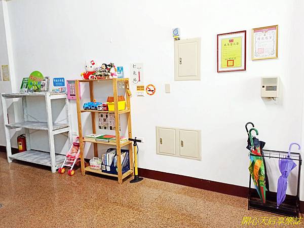 架上各擺放著美食地圖、管家名片、玩具、雜誌、童書、醫藥箱並提供住客寄放行李