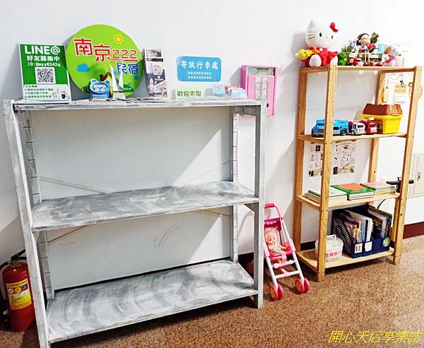 遠遠的就看到『南京222民宿』顯眼的大招牌,共有3層樓,擁有6間熱門親子風格的溜滑梯房,深受親子家庭喜愛,入住時看到不少年輕的爸爸媽爸帶著小小孩入住(我是中年媽咪.......)
