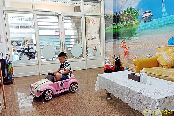 客廳有二台讓小朋友們看到就會衝上去騎乘的小汽車、小機車,適合小小孩騎乘玩樂