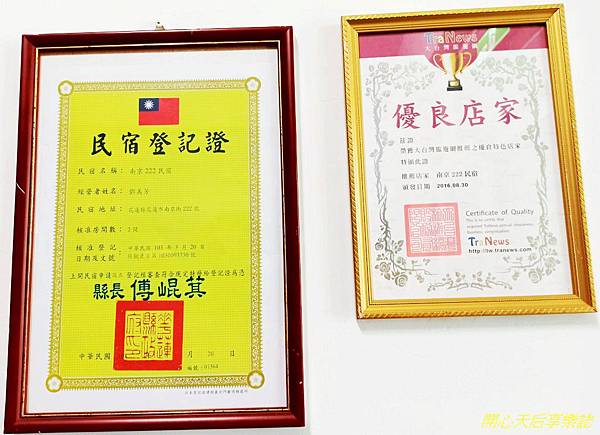 『南京222民宿』是合法民宿,更是「大台灣旅遊網」推薦的"優良特色店家"及榮獲「TraNews全球新聞」的"台灣百大名店",住宿品質有保證!