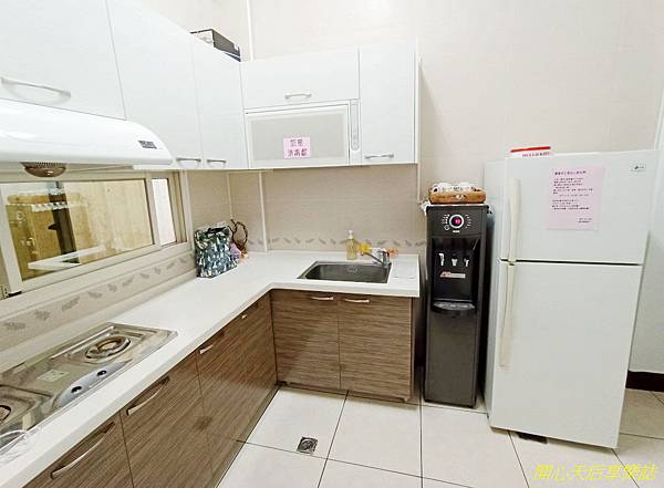 走廊盡頭是公用廚房,提供公用大冰箱、飲水機、馬克杯、奶瓶消毒處,讓媽咪可以少帶一些嬰兒用品,輕鬆出遊,大心