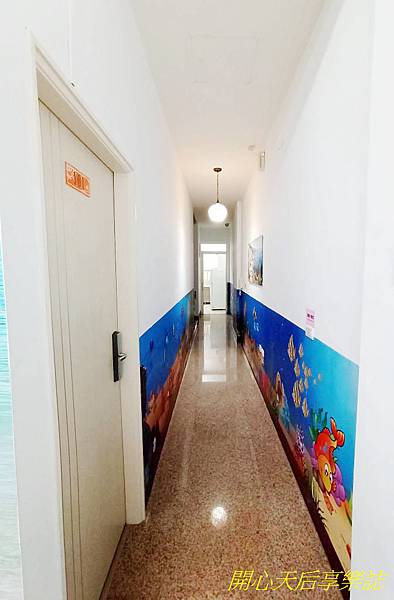 走廊明亮,二旁是海底世界彩繪,很吸睛