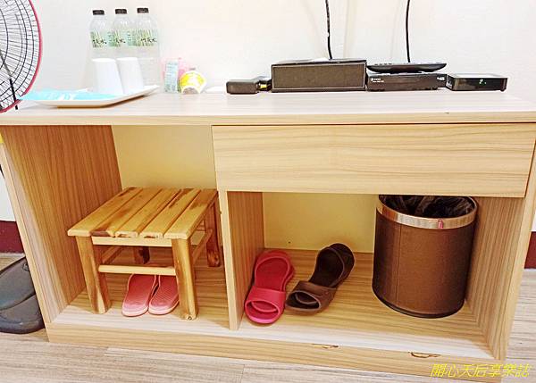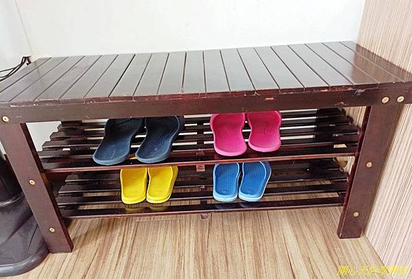 穿鞋椅下方,有男/女/小孩款的室內拖鞋