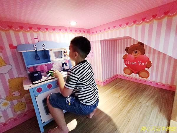 溜滑梯底下還有個超萌的熊熊小廚房,是恩恩小小孩時最愛玩的玩具,沒玩溜滑梯時,他就窩在這裏"煮飯炒菜",還像小時候那樣說:「媽咪我煮好了,給妳吃~」彷彿時光倒轉..........好懷念恩恩小小孩時的呆萌樣(現在很皮,沒那麼可愛了.......)