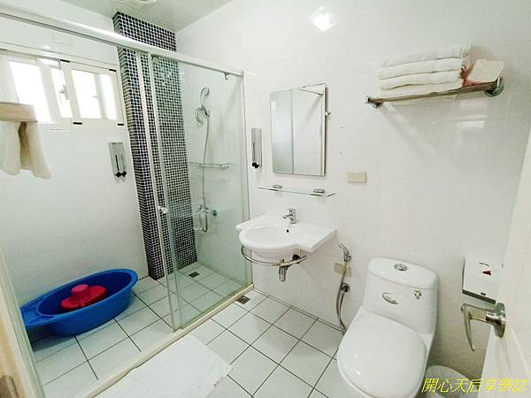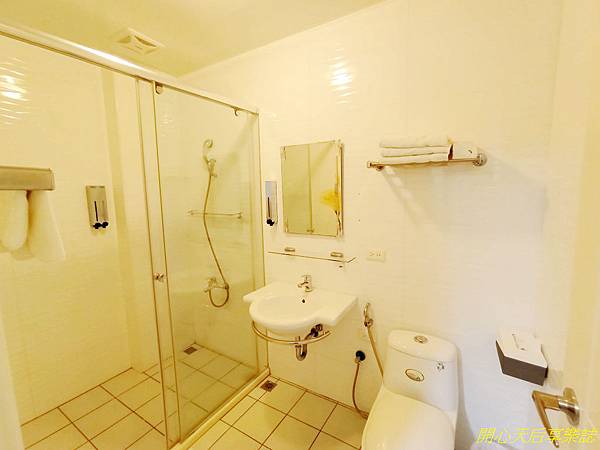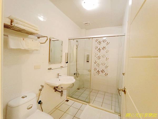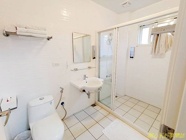 浴室空間較小,沒有乾濕分離(其他間有),但簡約乾淨,有提供大毛巾、小毛巾、沐浴乳、洗髮乳、洗手乳,其實沒什麼可挑剔的