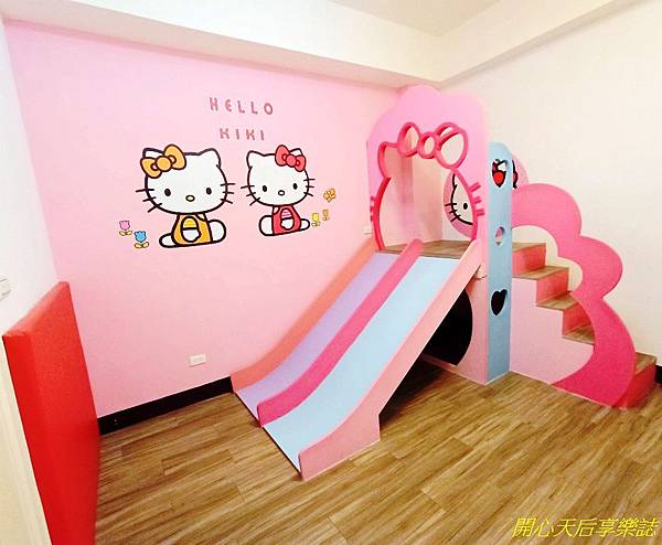 第一間是遊戲室,裏面擺了一座超萌、小朋友看了會興奮大叫的KiKi貓雙軌溜滑梯,造型別緻加上柔和粉彩,又讓我的少女心瞬間噴發